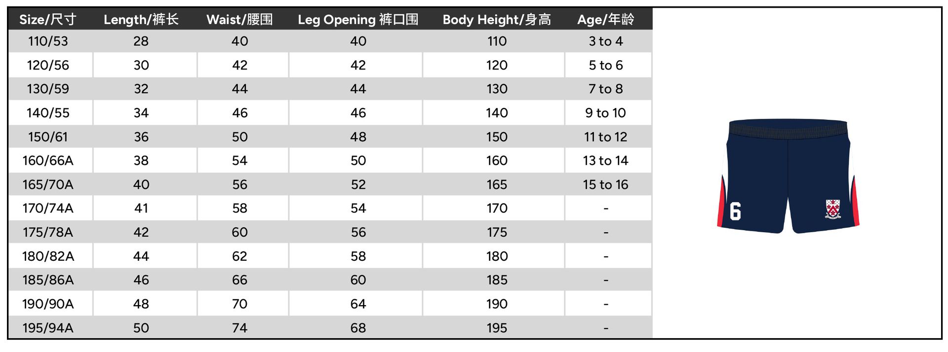 Size 110 or 120 or 130 or 140 or 150 or 160 or 165 or 170 or 175 or 180 or 185 or 190 or 195