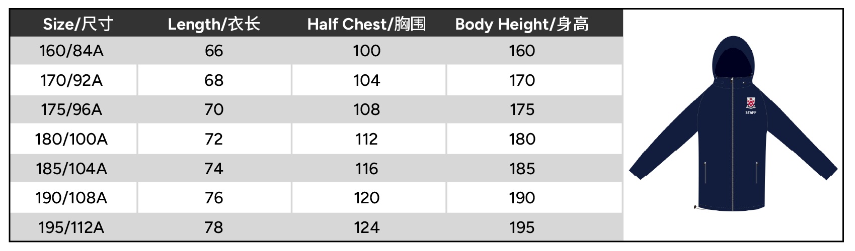 Size 160 or 170 or 175 or 180 or 185 or 190 or 195