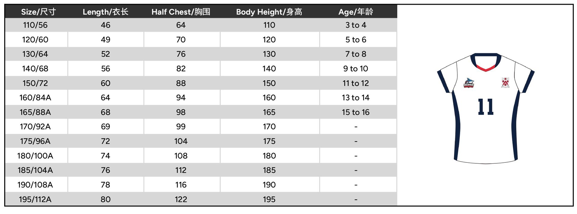 Size 110 or 120 or 130 or 140 or 150 or 160 or 165 or 170 or 175 or 180 or 185 or 190 or 195