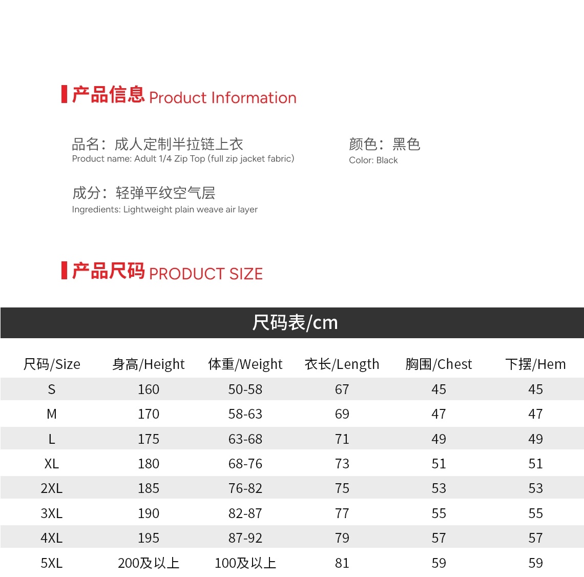 Adult 1/4 Zip Top (full zip jacket fabric)
