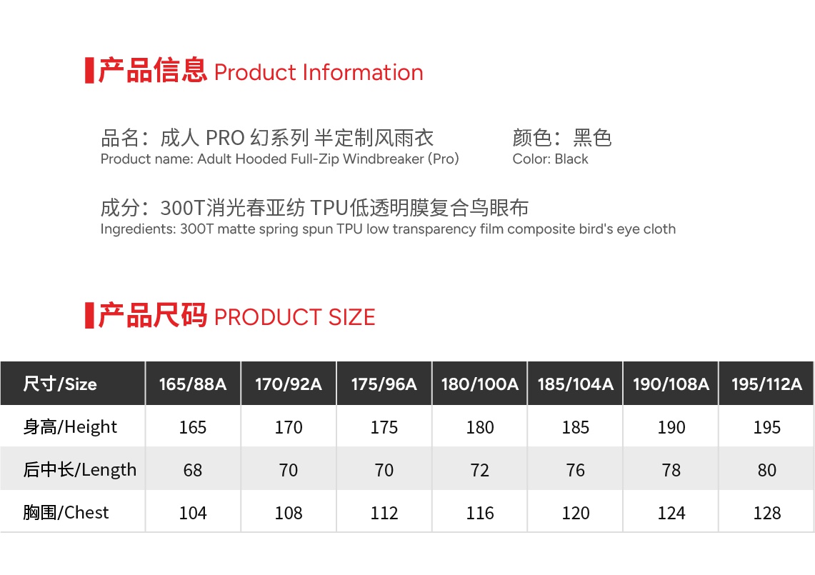 | Size | 165 or 170 or 175 or 180 or 185 or 190 or 195 |