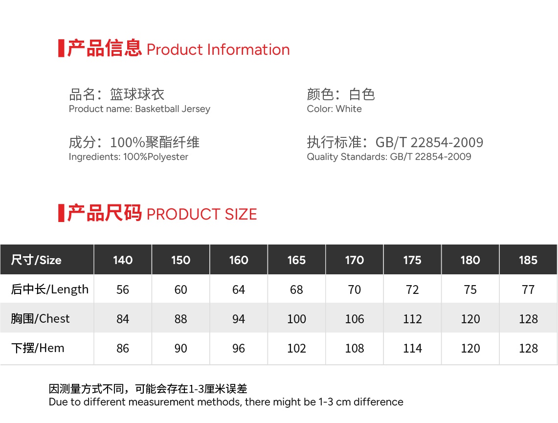 Size 140 or 150 or 160 or 165 or 170 or 175 or 180 or 185