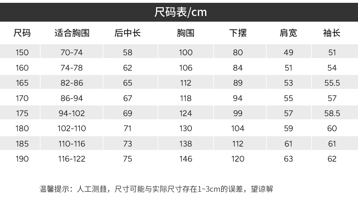 Size 150 or 160 or 165 or 170 or 175 or 180 or 185 or 190