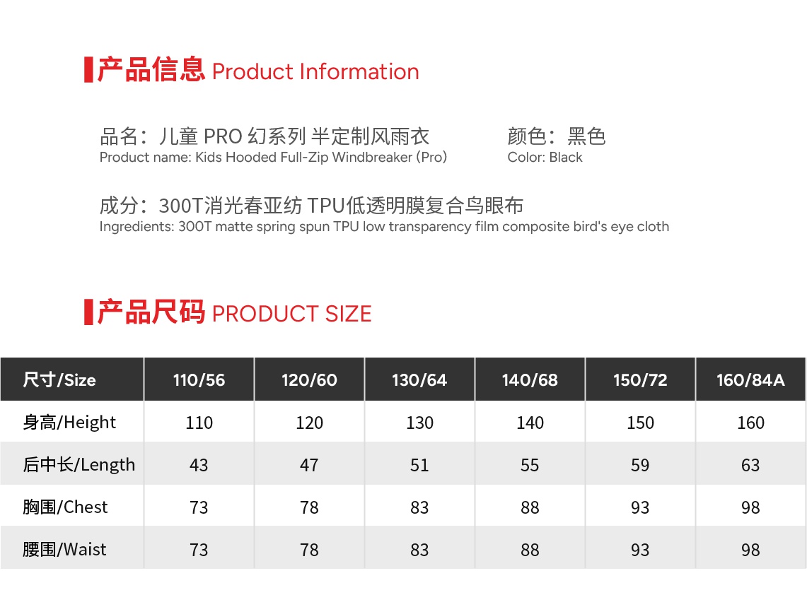 Size 110 or 120 or 130 or 140 or 150 or 160