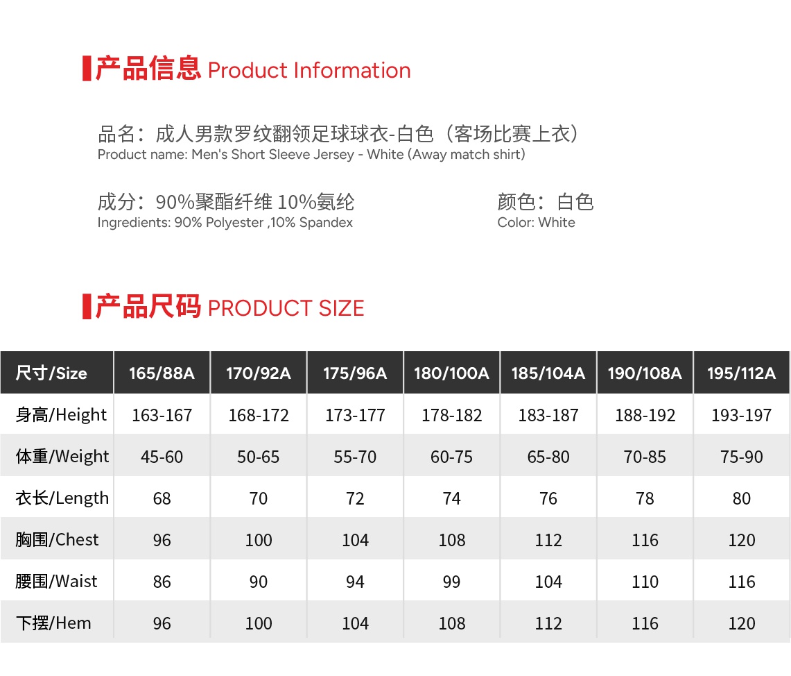 Size 165 or 170 or 175 or 180 or 185 or 190 or 195