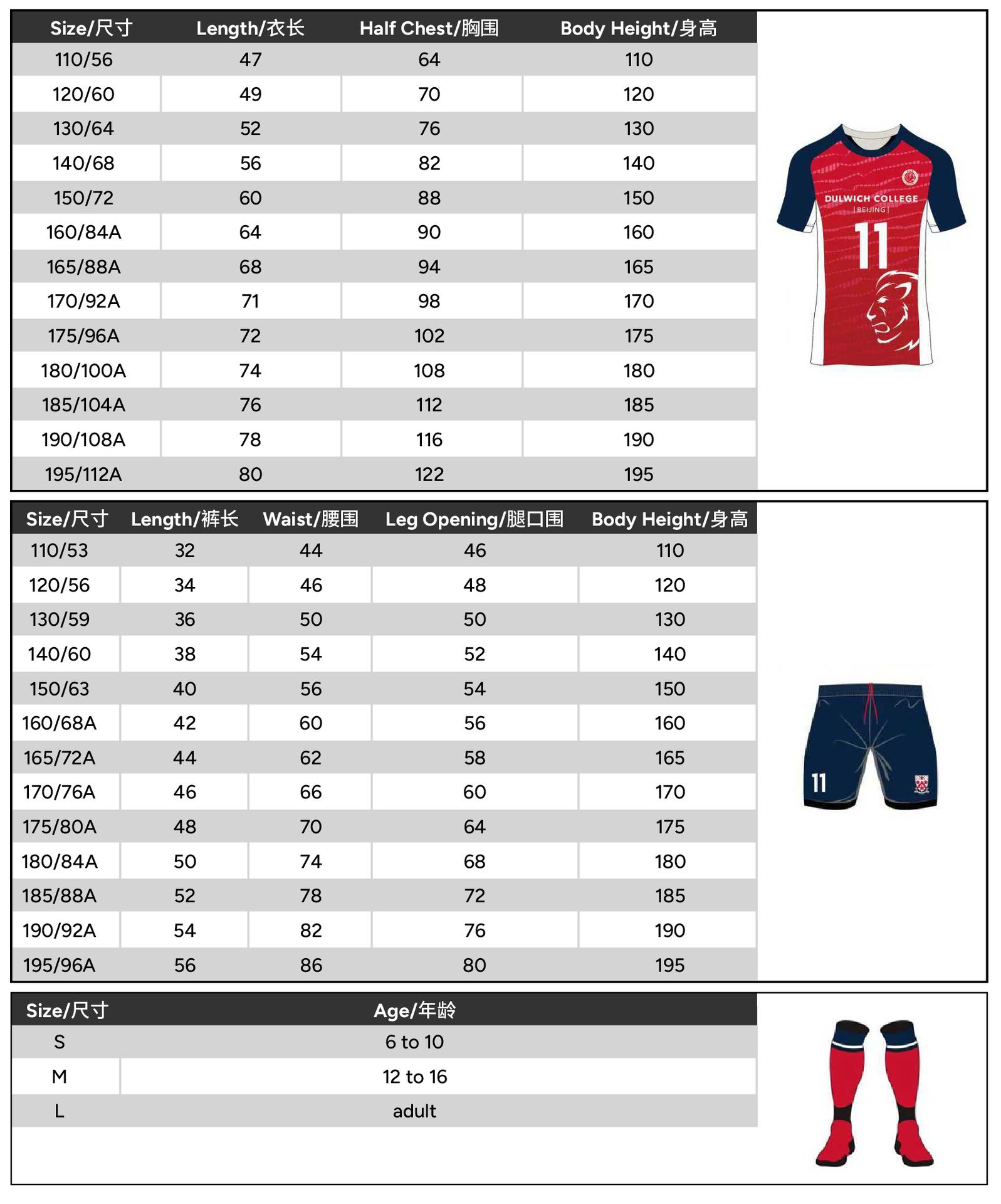 Size 110 or 120 or 130 or 140 or 150 or 160 or 165 or 170 or 175 or 180 or 185 or 190 or 195