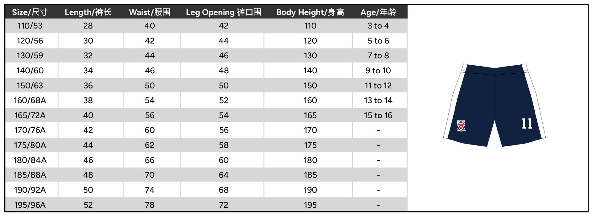 尺码 110 or 120 or 130 or 140 or 150 or 160 or 165 or 170 or 175 or 180 or 185 or 190 or 195